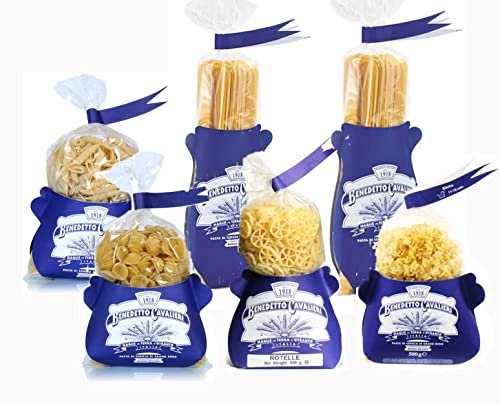 BOX DEGUSTAZIONE LU VIENTU PASTA CAVALIERI SPAGHETTI - ROTELLE - MEZZI RIGATONI - ELICHE - TAGLIATELLE - PENNE LISCE PASTA DI SEMOLA DI GRANO DURO - PRODOTTO ARTIGIANALE MADE IN SALENTO (6 X 500gr)
