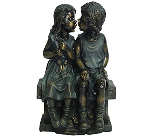 Dehner - Figura Decorativa Coppietta su panchina, ca. 49.5 x 33.5 x 21 cm, Magnesia, Bronzo/Petrol