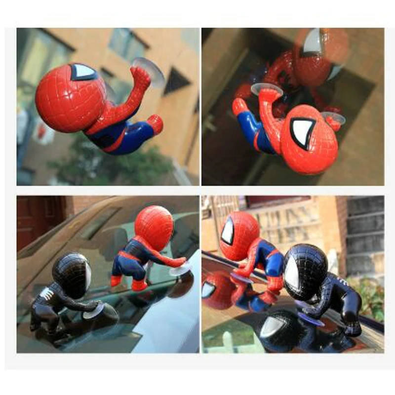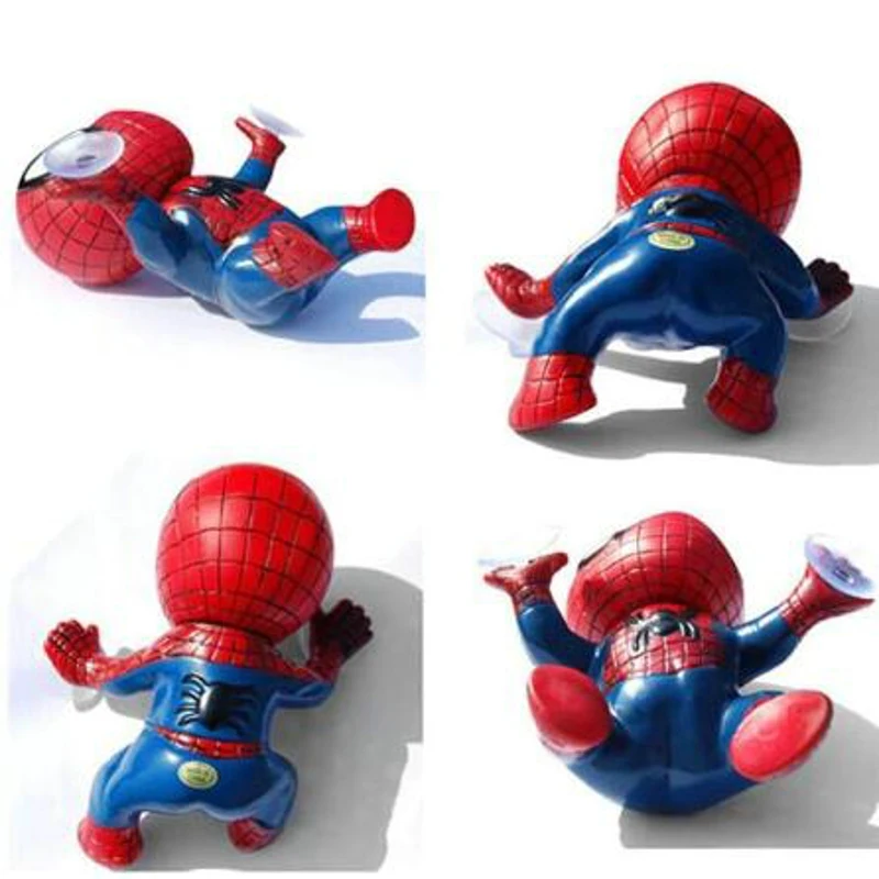 Dehyaton 360 Rotating Cute 3D Climbing Spiderman Sticker with Suckers Car Head Rear Window Sticker Auto Ornament Doll Decal