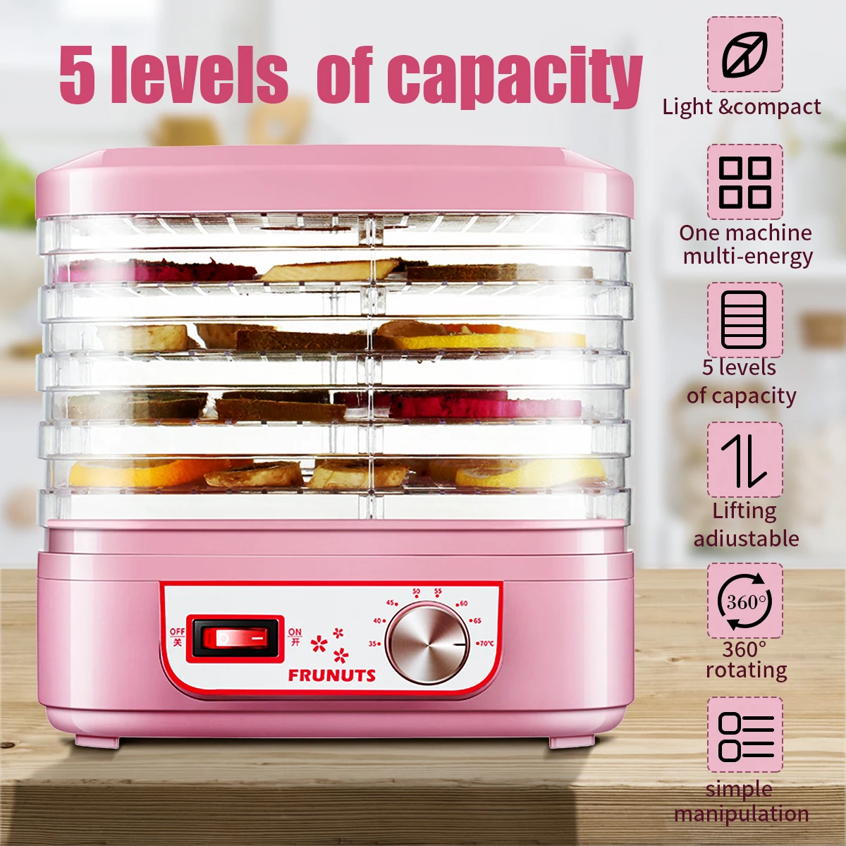 Food Dehydrator Machine 220V Fruit Vegetable Herb Meat Drying Machine Pet Snacks Food Dryer With 5 Trays Kitchen Appliances