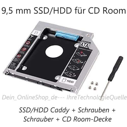Dein_OnlineShop_de SATA 3.0 HDD/SSD/2.HDD ODD SATA III adattatore per alloggiamento drive Serial ATA Caddy per dischi rigidi SATA da 9,5 mm (alluminio) con viti e cacciaviti, unità PC portatile