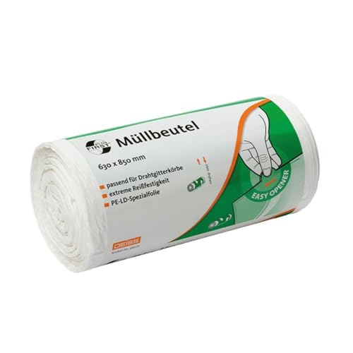 Deiss First, Sacchetti da immondizia, 60-80 l - 1 Cartone di Sacchetti Colore Bianco, grandezza dei Sacchetti: 63 x 85 cm, Spessore: 10 µ, Ogni Rotolo Contiene 50 Pezzi, Confezione da 6 Rotoli
