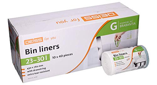 DEISS - Sacchetti per la spazzatura 23-30 litri per Brabantia Touch Bin (taglia G), 400 pezzi