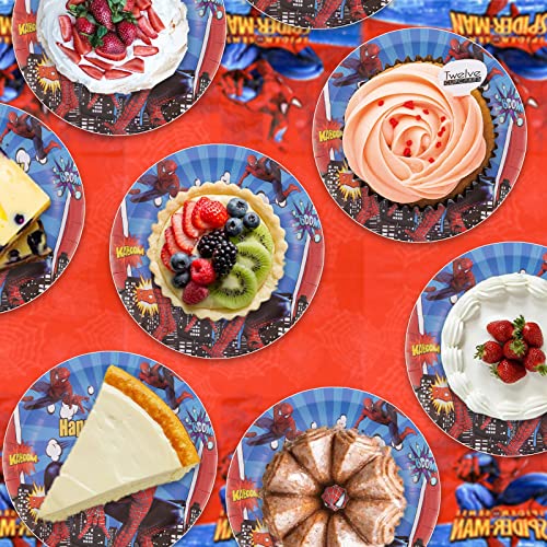 Dekewe 92 Pezzi Spider Festa di Compleanno Stoviglie, Hero Decorazioni Compleanno Piatti Tovaglia Palloncini Compleanno Decorazione Torta Banner, Decorazioni Compleanno Festa per 10 Bambini