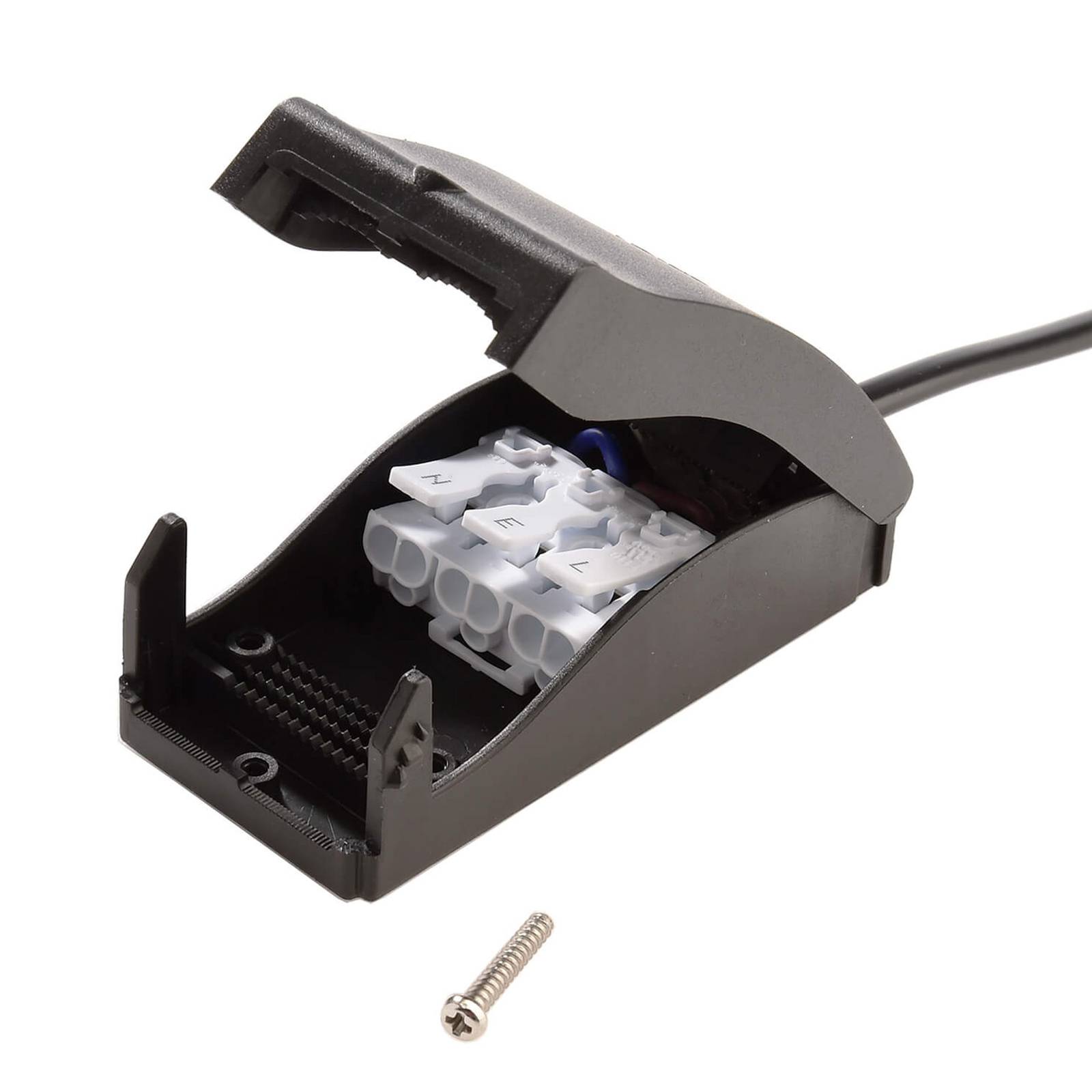 Scatola di connessione Quick 2-WayLa scatola di connessione tripolare Quick 2-Way può essere utilizzata universalmente per il collegamento rapido o il cablaggio passante di apparecchi di illuminazione o alimentatori. Per l'inserimento in soffitti con un'apertura circolare di 68 mm e un'intercapedine di 25 mm. La chiusura rapida è fissata con una vite supplementare - Cablaggio passante max. 16 A - Per cavi da 0,5 a 1,5 mm²