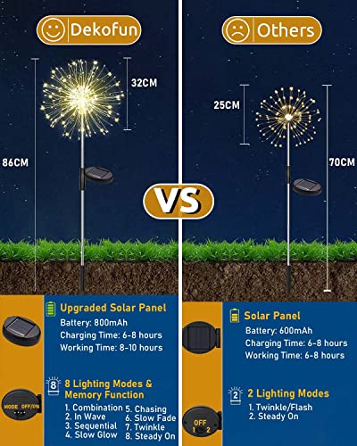 Dekofun Luci Solari Giardino Esterno, 2 Pezzi 120 LED Fuochi D'artificio Solari IP65 Impermeabile 8 Modalità Decorative Lampade per Vialetto Prato Cortile Aiuola Matrimonio Feste