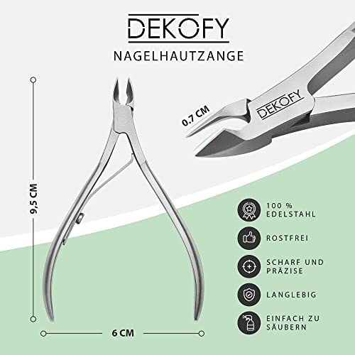 DEKOFY Pinza per cuticole in acciaio inox - tagliente extra affilato con taglio preciso - per rimuovere cuticole senza dolore su dita e dita dei piedi - forbici cuticole, rimozione cuticole