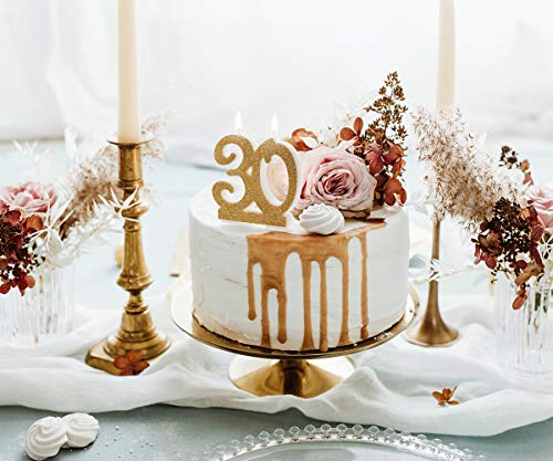 DekoHaus - Candela di compleanno con numero 30, altezza 7,5 cm, colore oro