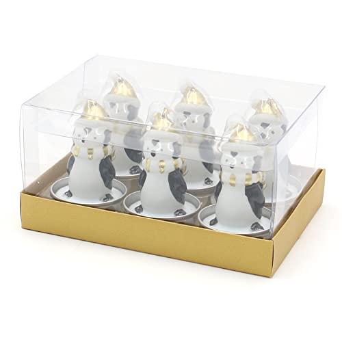 Dekohelden24 Set di 6 pinguini con cappello dorato, dimensioni di ogni lumino (lunghezza x larghezza x altezza): 4 x 4 x 7 cm, 7 cm
