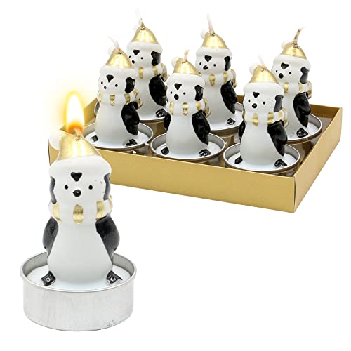 Dimensioni di ogni candela: 4 x 4 x 7 cm (lunghezza x larghezza x altezza). Motivo: pinguino con cappello di Natale dorato