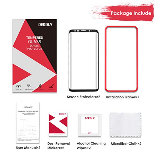DEKOLY Vetro Temperato per Samsung Galaxy S9 [2 Pezzi], 3D Copertura Completa Pellicola Protettiva in Protezione Schermo con Kit di Installation Frame, Garanzia di Sostituzione a Vita - Nero