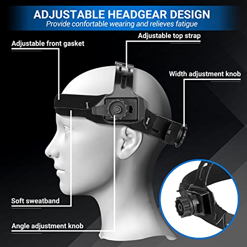 Cinghie regolabili per assicurare una vestibilità aderente in modo da non richiedere mani, lasciando le mani libere per la saldatura