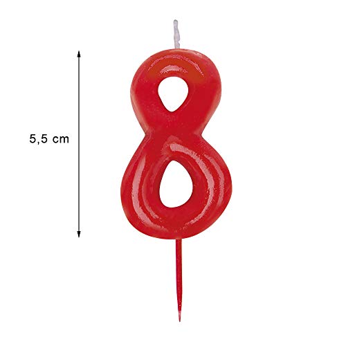 Dekora-345179 Compleanno Numero 8-Candela di Colore Rosso, 8, 345179
