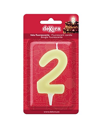 Dekora - Candela di Compleanno Originale | Candelina per Compleanno Numero 2 Fluorescente