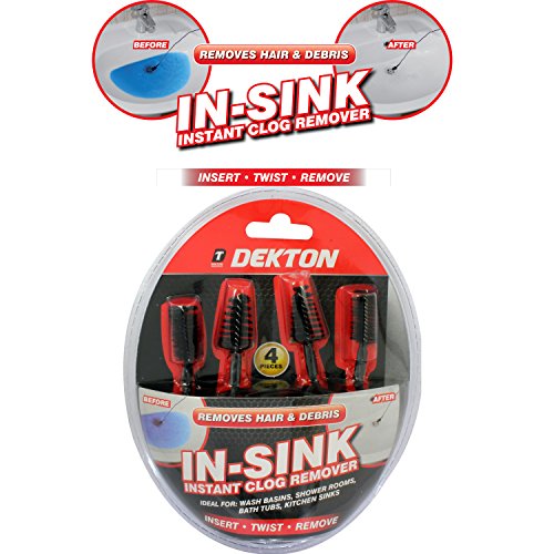 Dekton Kit di 4 spazzole per sturare lavandini, per rimuovere sporcizia e capelli dallo scarico di lavandini e docce