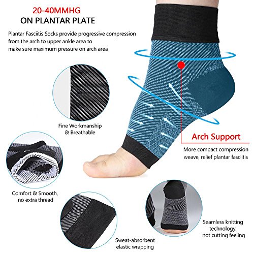 COMODO INDOSSARE I calzini neri senza dita allontanano il sudore dalla pelle per mantenere i piedi asciutti e freschi. I nostri calzini di fascite plantare leggeri e confortevoli possono essere indossati sotto calze atletiche o calze alla moda per un ulteriore sostegno dell'arco.