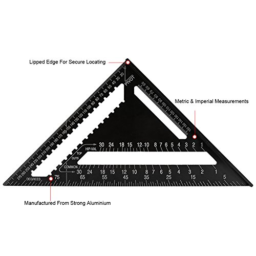Delaman Metrric Triangolare Square Rafter Square, Triangolo in Lega di Alluminio Triangolo Goniometro 90 Gradi 7 Pollici 12 Pollici, Nero (Taglia: 12 inch)