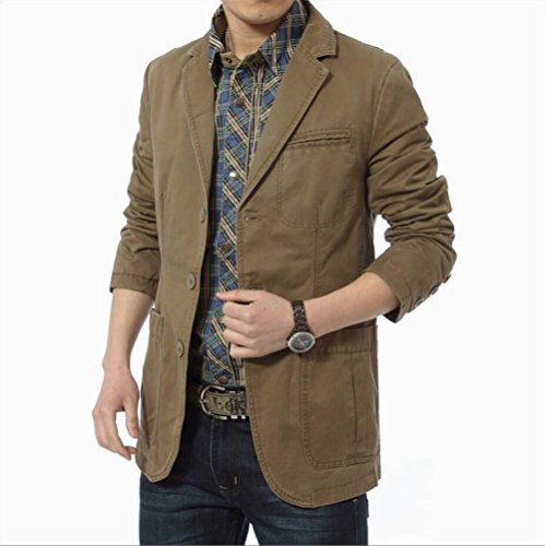 DeLamode da Uomo Stile Lungo 100% Cotone Blazer Collar Giacca