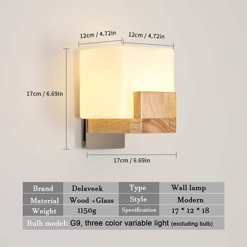 Delaveek Applique da Parete Interno, Lampada Moderna G9 Luce Dimmerabile, in Legno per Camera da Letto Corridoio Soggiorno Sala da Pranzo Scala 3000K-6500K