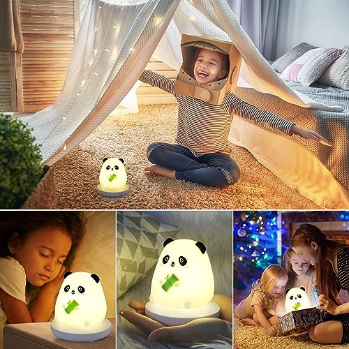 Delaveek Luce Notturna Bambini Ricaricabile Panda, Lampada Neonato Notturna LED in Silicone 3000-6500K, Touch Luminosità Regolabile Luci Notturne USB per Bambini Cameretta Bambino Letto e Regali