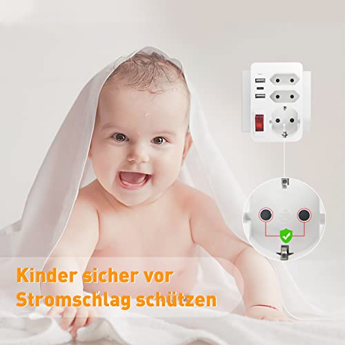 DELEE Adattatore per Presa, Presa USB 6 in 1 Presa Multipla con 2 Prese 3 Caricatore USB 1 Porta di Tipo C Compatibile per Telefono Portatile Elettrodomestico, Spina Multipla per Casa Viaggi Ufficio