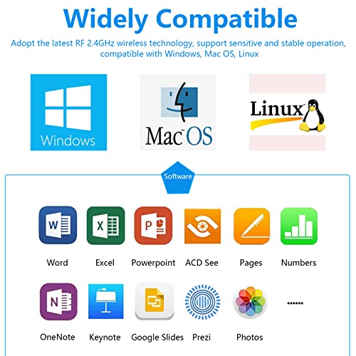 Il clicker remoto di presentazione per laptop supporta software: Keynote, Presentazioni Google, Prezi, MS Word, Excel, PowerPoint, ACD See, sito Web e così via.