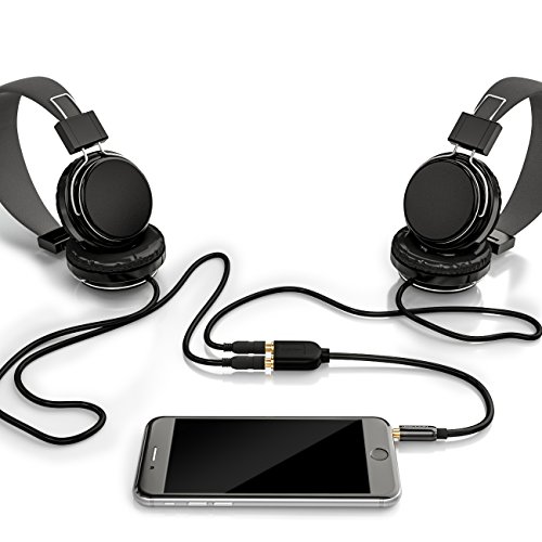 DeleyCON Adattatore Jack Audio Stereo - 2x Jack 3,5mm Femmina a 1x Jack 3,5mm Maschio - Nero