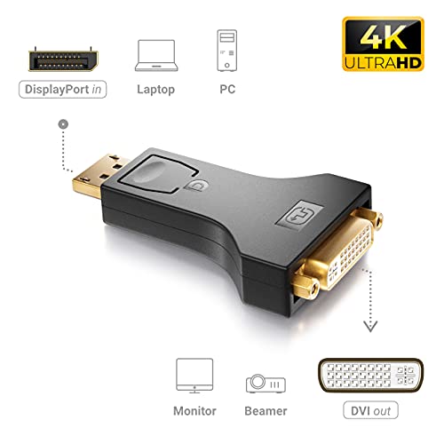 deleyCON Adattatore da DP DisplayPort a DVI 4K // Connettore del cavo adattatore DVI