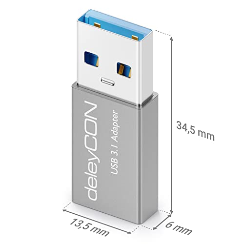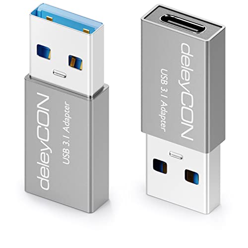 DeleyCON Adattatore da USB C a USB [3 Pezzi] Adattatore da Presa C a Connettore A USB 3.1 5 Gbit/s - per PC Computer Laptop Notebook Alluminio Argento