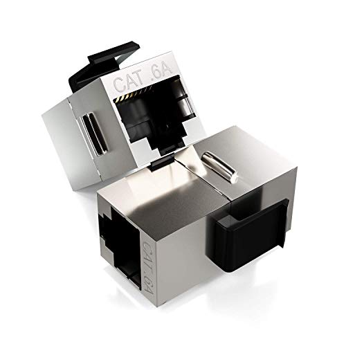 DeleyCON 2x CAT6a Keystone Modulo Cavo Patch Accoppiamento Connettore Schermato 2x Presa RJ45 Rete Patch Panel Staffa Keystone Estensione