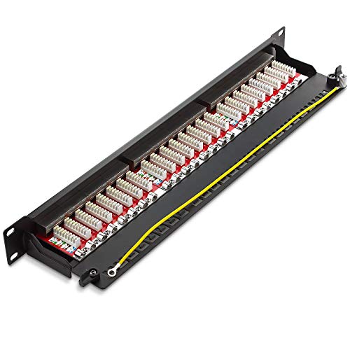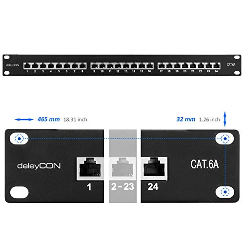 DeleyCON CAT6a Patch Panel 24 Porte del Desktop 19" Pollici Montaggio Rack Assemblaggio del Server 24x RJ45 Schermato TIA568A TIA568B - Nero