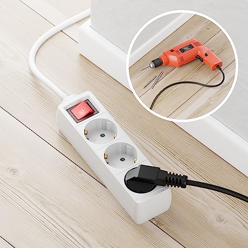 DeleyCON Ciabatta Elettrica a 3 Prese con Spina Piatta e Interruttore ON/OFF Ciabatta Elettrica per uso Interno Cavo 3,0 m Spina Piatta Robusto Alloggiamento in Plastica Bianco