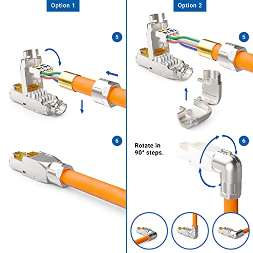 DeleyCON 2x CAT 6a Connettore di Rete a 90° Angolo RJ45 Senza Attrezzi con Schermatura 10 Gbit/s Spina di Rete per la Posa Rigidi di Cavi Grezzi Connettore RJ45 Ethernet LAN Cavo Patch DSL