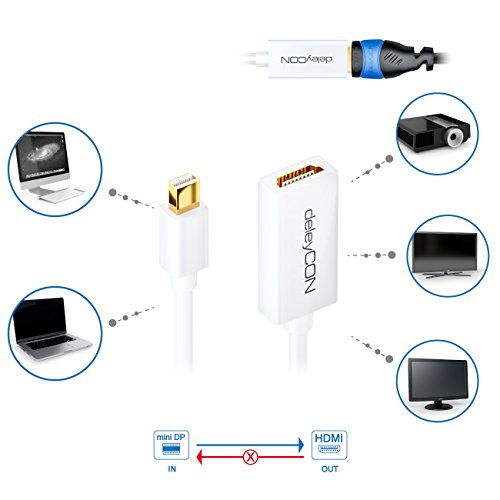 DeleyCON Mini DisplayPort a Cavo Adattatore HDMI 4K UHD 2160p Full HD 1080p 3D Compatibile con Thunderbolt 1 e 2 Mini DP Maschio a HDMI Femmina - Bianco