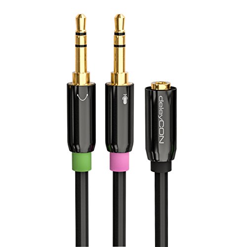 DeleyCON Headset Adattatore per PC Portatile - Cavo Audio Jack Y Adattatore Stereo - 1x Jack da 3,5mm Femmina a 2x Jack da 3,5mm - Cuffie da Smartphone a PC o Laptop