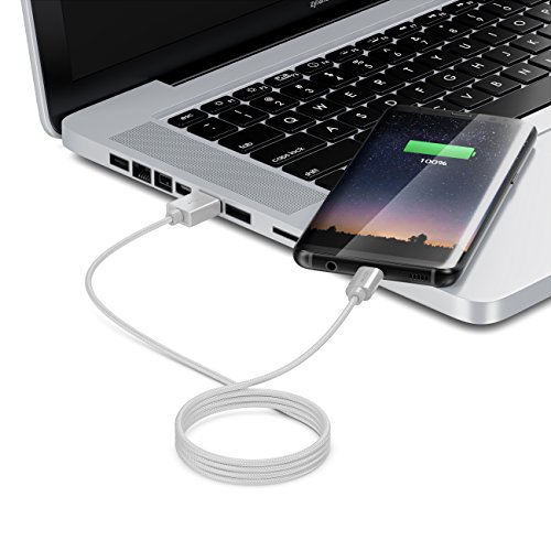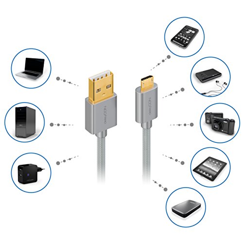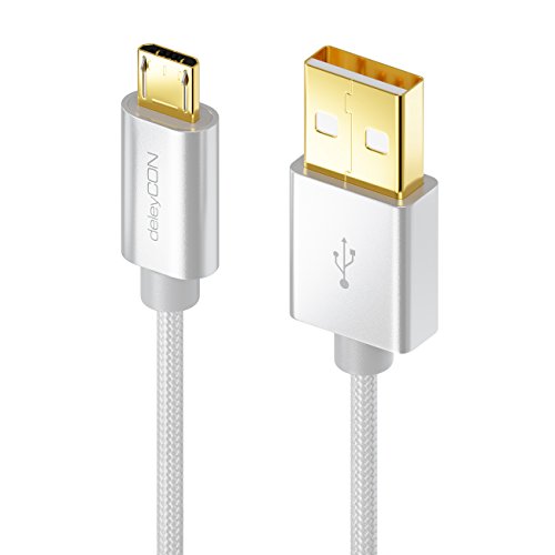 DeleyCON Cavo Micro USB 1m Nylon + Cavo Metallico Cavo Dati di Ricarica Cavo di Ricarica Rapido Smartphone Tablet PC Laptop Notebook - Argento