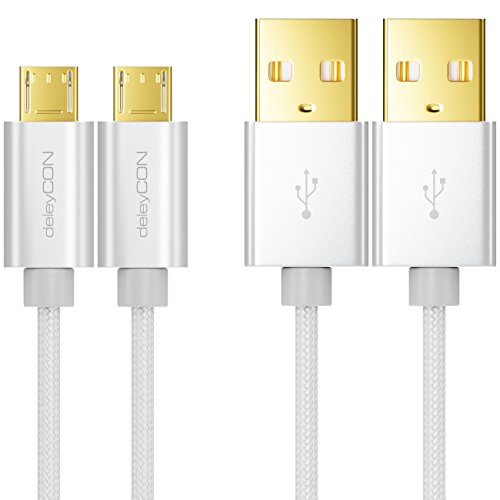 DeleyCON Cavo Micro USB Set 2x 1m Nylon + Cavo Metallico Cavo Dati di Ricarica Cavo di Ricarica Rapido Smartphone Tablet PC Laptop Notebook - Argento
