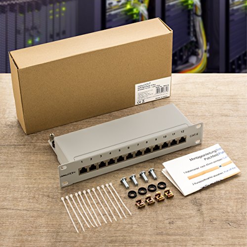 DeleyCON CAT6 Patch Panel 12 Porte del Desktop 10 Pollici Montaggio Rack Assemblaggio del Server 12x RJ45 Schermato TIA568A TIA568B - Grigio Chiaro