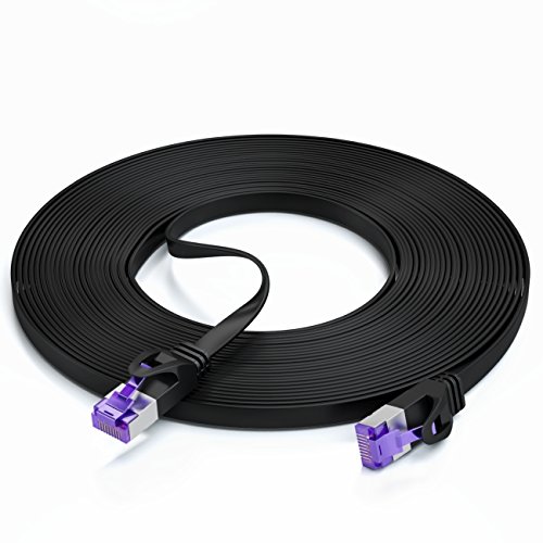 DeleyCON 15m Cavo Patch RJ45 Cavo Piatto con CAT7 Cavo Grezzo Cavo di Rete Ethernet Slim U/FTP Gigabit LAN Rame - Nero