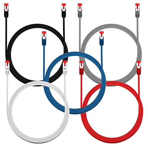 DeleyCON 5x 0,5m Cavo Patch CAT6 PIMF S/FTP Schermatura CAT-6 RJ45 Cavo di Rete Cavo Ethernet LAN DSL Interruttore Router Modem Punto di Accesso - Multicolore