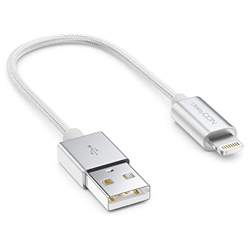 DeleyCON 0,15m Cavo di Ricarica 8 Pin Lightning Cavo USB MFI Apple per IPhone 11 Pro 11 Pro Max 11 SE 2a Generazione XR XS Max XS X Tappi di Metallo e Cavo di Nylon - Argento