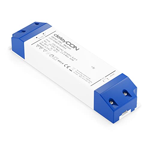 DeleyCON 24 V LED SLIM Trasformatore Alimentatore 0-60 W 200-240 V a 24 V DC LED Lampade Strisce Luminose G4 MR11 MR16 Luci Sovraccarico Surriscaldamento Cortocircuito