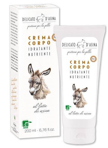DELICATO D'ASINA - Crema Corpo Bio al Latte D'Asina - Altamente Idratante e Nutriente - Ricca di Proteine - Certificata AIAB - 200 ml