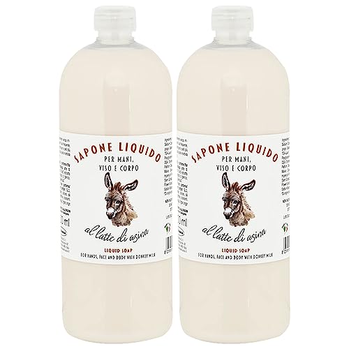 Delicato D'Asina Sapone Liquido - Flacone Ricarica da 1000ml, Certificato AIAB - Detergente a Base di Latte D'Asina, Per Uso Frequente Senza Irritazione (2 Confezioni)