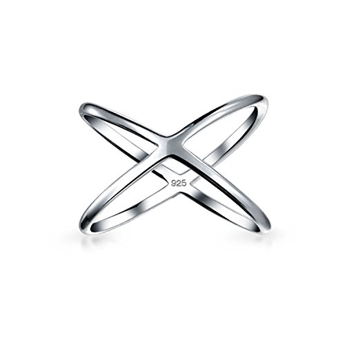 Delicato Sottile Aperto Moderno Semplice Geometrico Atomic X Criss Cross Anello Per Adolescenti Per Le Donne .925 Sterling Silver