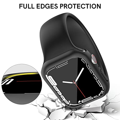 Delidigi 2 pezzi Cover Apple Watch Series 8 7 45 mm, Protettiva per Paraurti Rigida per PC Custodia Antiurto Accessori per iWatch Series 8 7 (Nero&Chiaro, Senza vetro temperato, 45mm)