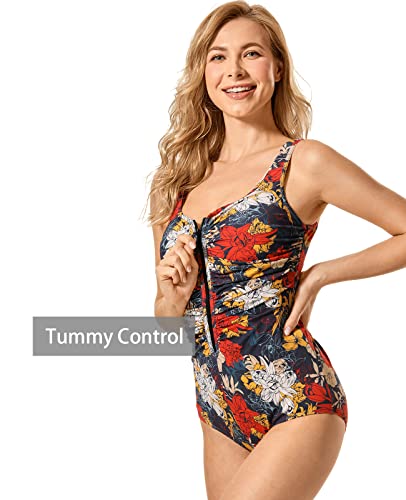 DELIMIRA Donna Costume da Bagno Coppe con Imbottite Cerniera Frontale Tratti Colorati di Fiori 44