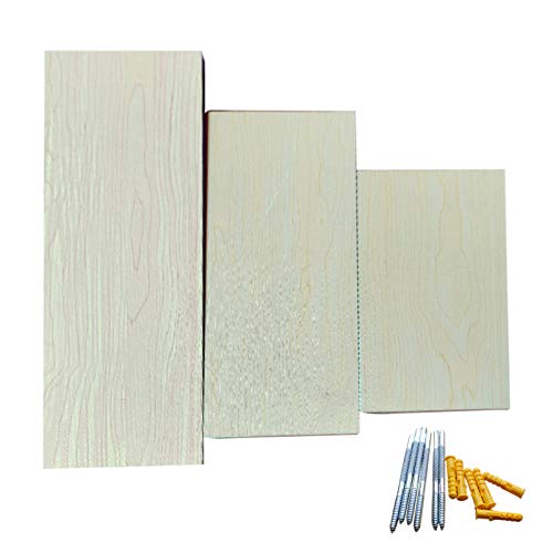 DELITLS Set di 3 mensole fluttuanti da parete, in legno, con staffa invisibile, da appendere alla parete, per camera da letto, bagno, soggiorno, cucina (acero bianco)