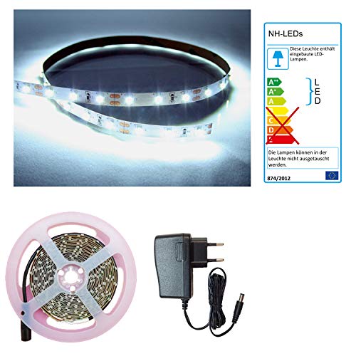 Delloptoelectronics - Striscia luminosa LED, 2 m, incl. alimentatore di rete PCB, colore bianco, con luce bianca