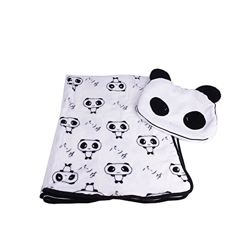 Delmkin - Set combinato di coperta e cuscino per bambini in grazioso peluche, motivo: panda